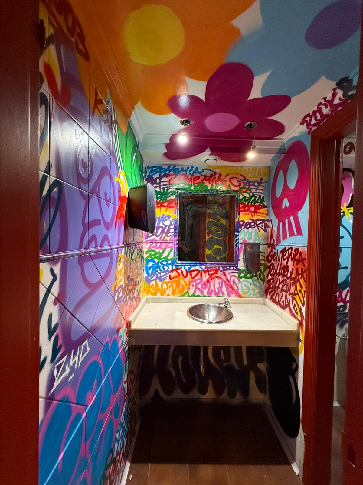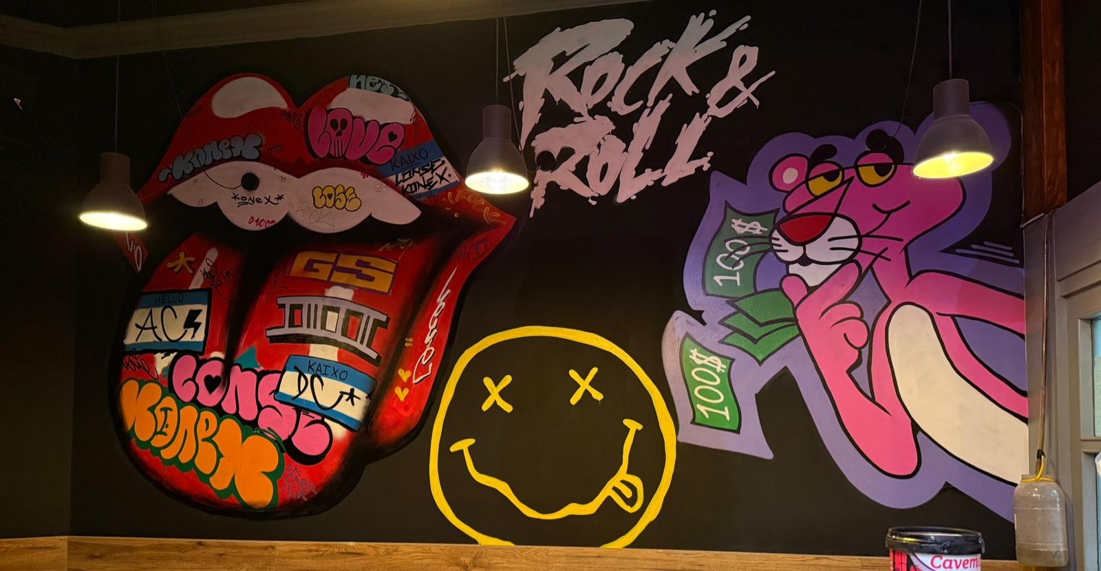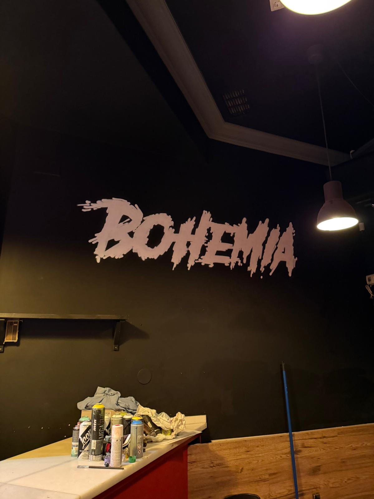 En esta ocasión, tuvimos la oportunidad de llevar nuestra creatividad al Bar Bohemia Rock, un lugar con una energía única y una fuerte identidad rockera. Nos encargamos de transformar varias de sus paredes, plasmando sus ideas y aportando un toque aún más auténtico.
