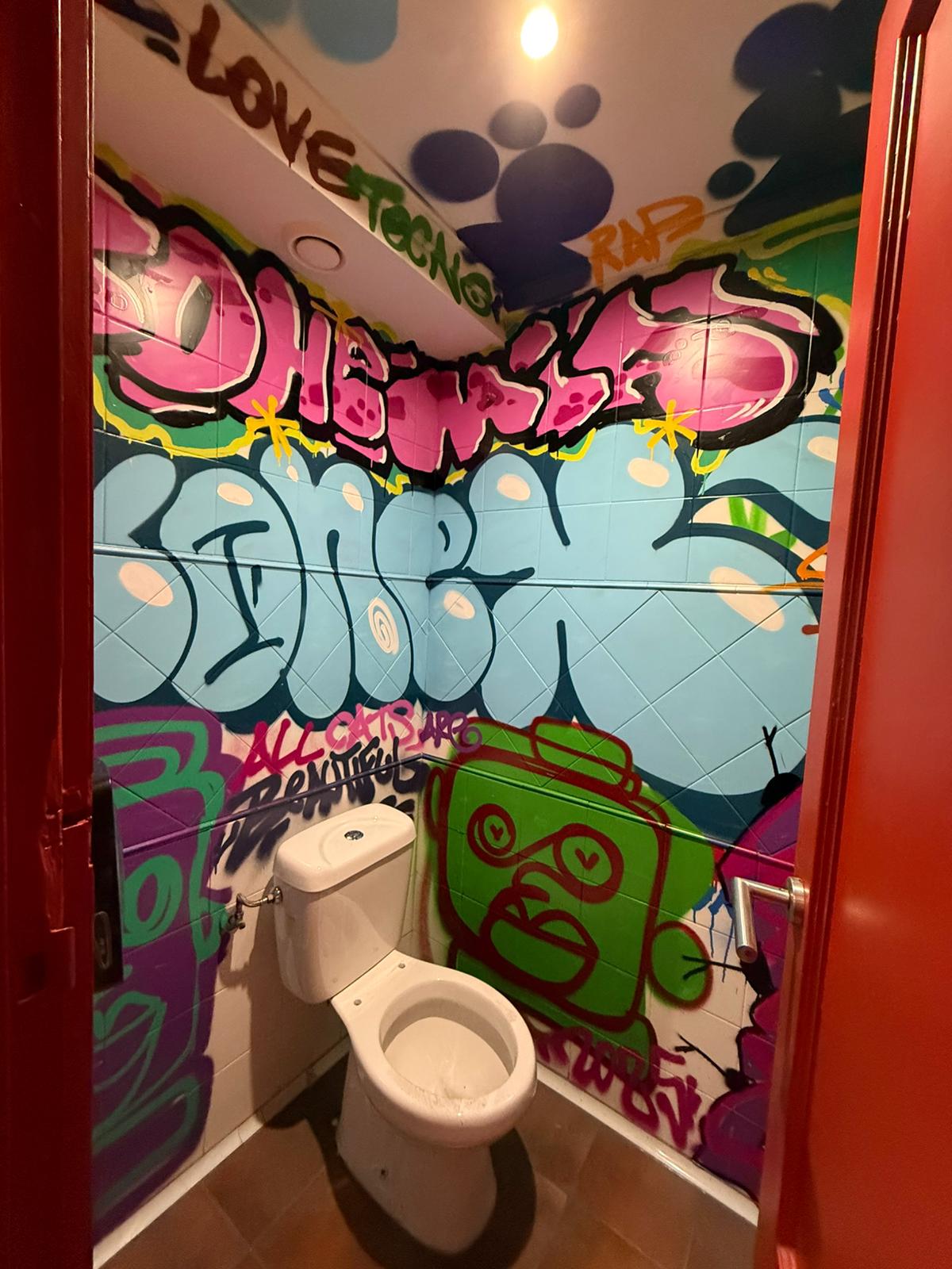 Todo el trabajo fue realizado con sprays y pintura acrílica de primera calidad, asegurándonos de mantener una calidad óptima. Si buscas darle a tu espacio un toque auténtico, artístico y único, ¡contáctanos y hagamos algo increíble juntos!